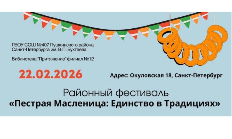 Дорогие друзья! Школа №449 приглашает семьи обучающихся Пушкинского района на Масленичные посиделки «Кладовая традиций». В программе мероприятия: знакомство с историей праздника; мастер-класс «Народная кукла в традициях и обрядах»; исполнение народных песен и частушек; традиционные народные игры; чаепитие «Традиции гостеприимства»; горячие…